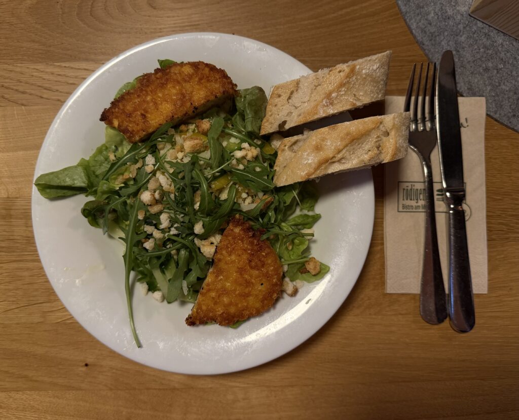 Wenn wir in die Therme Bad Staffelstein gehen, essen wir eigentlich immer in Rödigers Bistro am Meer. Es gibt eine sehr große Auswahl an Gerichten, auch Vegetarische und Vegane. Sehr nettes Personal.