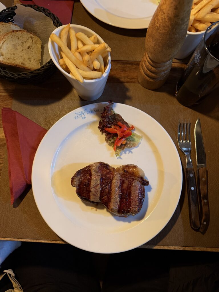 Im ganzen schon teurer (vor allem die Pommes) aber für ein sehr gutes Steak okay. (-2)