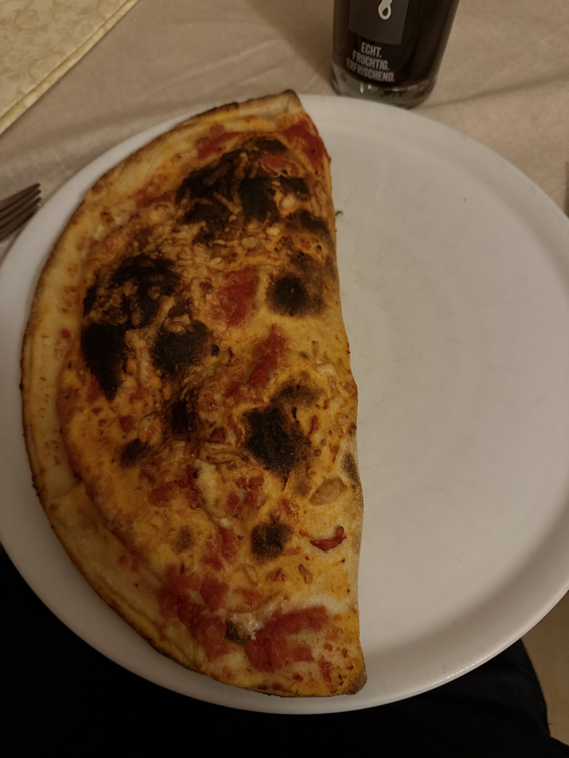 Sehr gut, reichlich Salami, etwas viel Käse. Knuspriger Rand.