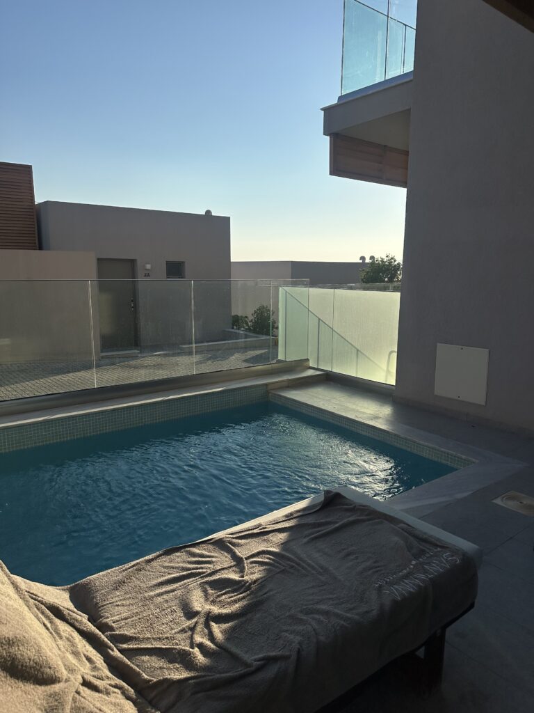 Hotelzimmer und Anlage war sehr modern und luxuriös. (-0,5 weil das Griechische Abwasser netz „scheiße“ ist (Wortwitz beabsichtigt xD ))