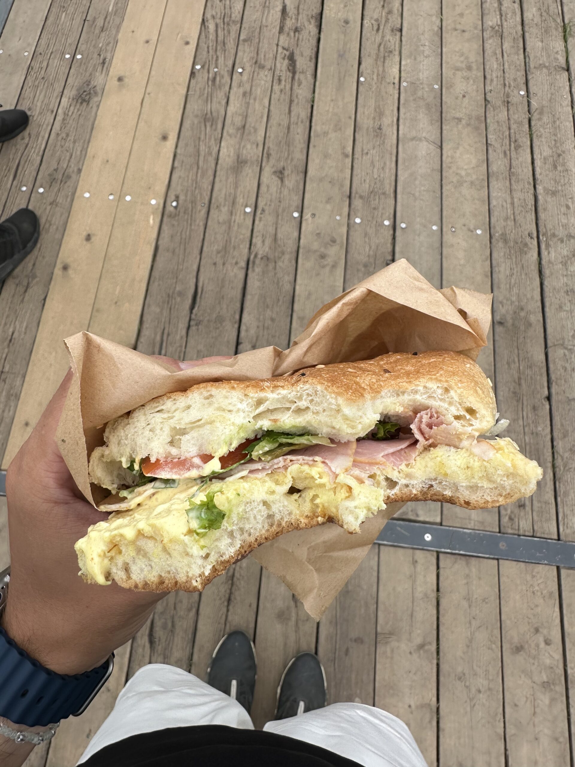 Frischer Schinken, knackiger Salat und eine geniale gelbe Sauce im knusprigen Ciabatta. Außen kross, innen weich – ein einfacher, ehrlicher Snack, der ordentlich satt macht.