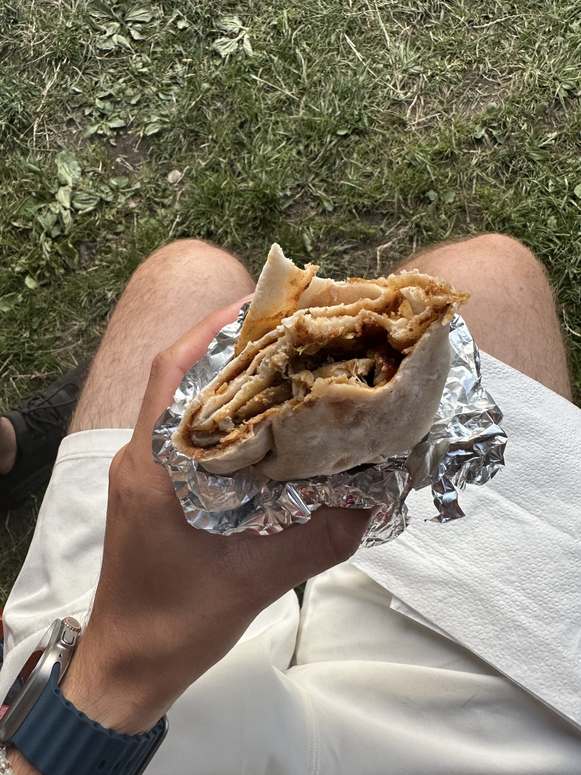Das Fleisch und das Gemüse waren frisch, das Brot fluffig und leicht angegrillt. Alles in allem ein guter Snack, der ordentlich satt gemacht hat.