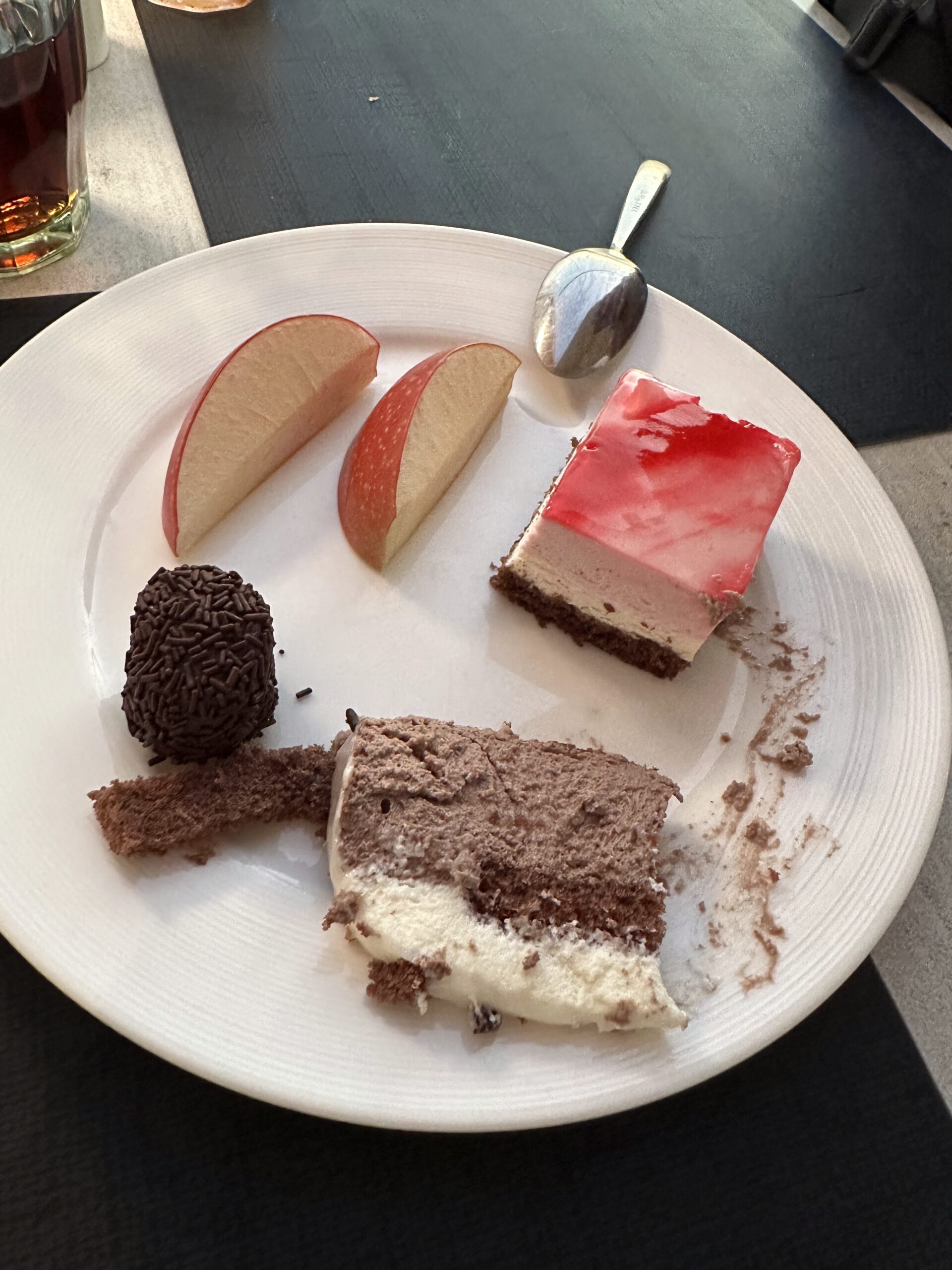 Das Frühstücksbüffet war sehr üppig bestückt. Man konnte sich fast nicht entscheiden deswegen habe ich von allem erstmal ein stück genommen. Von der Vorspeise bis zur Nachspeise alles war Programm.